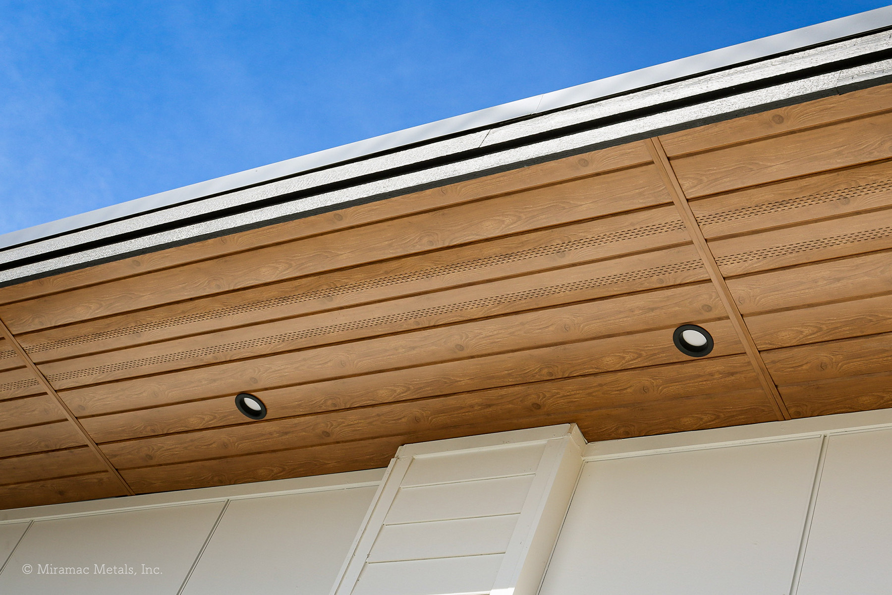 Miramac’s soffit products provide superior framing protection and defense against pests while offering a durable, maintenance-free solution. Whether used as a standalone metal feature or as part of a complete package with metal siding and roofing, metal soffit is an essential addition to projects of all sizes.